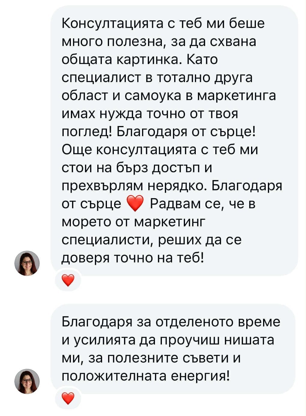 специализирам в направление "психология в маркетинга" и предлагам стабилни основи (а не 'хакове' и 'трикове')